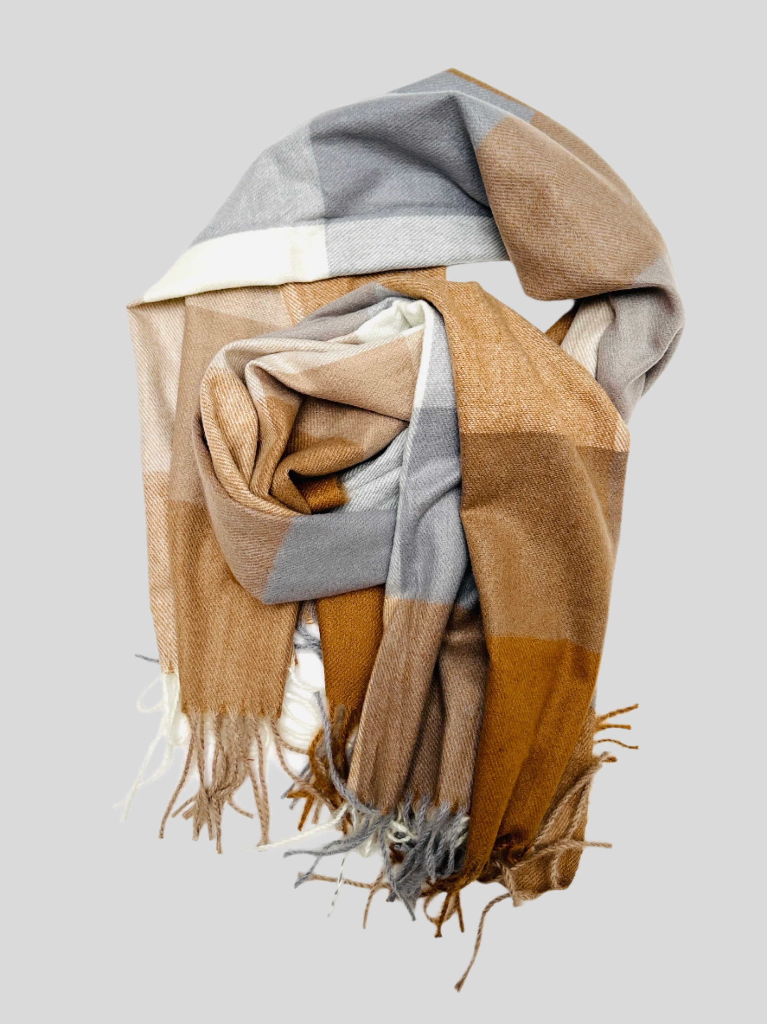 Grå og nude ternet-scarf