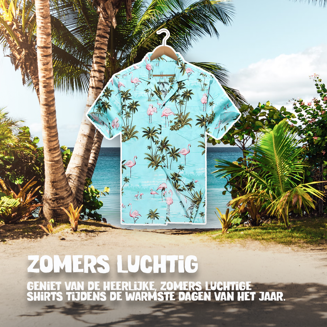 Skil dig ud med Flamingoer Tilføj et legende twist til din sommergarderobe med vores Hawaii-skjorte med flamingoer. Denne iøjnefaldende skjorte...