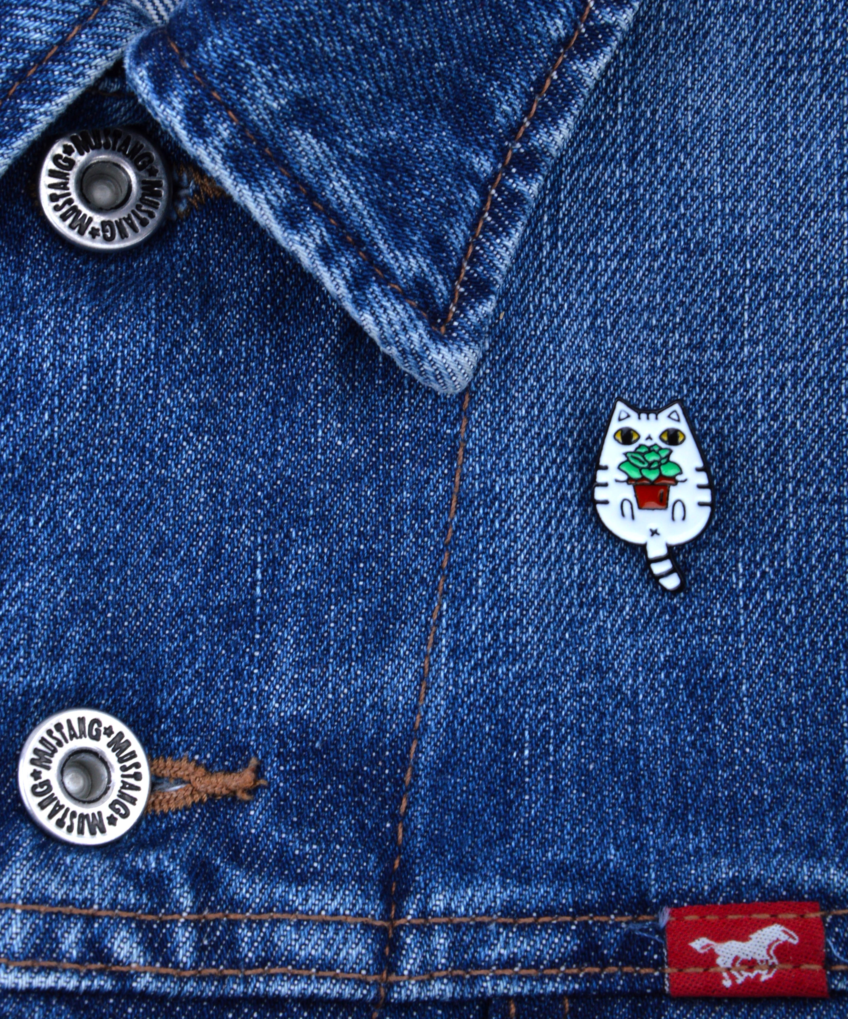 Charming and Unique The Cat with Plant Pin combines cuteness with style, making it an adorable accessory for animal lovers....