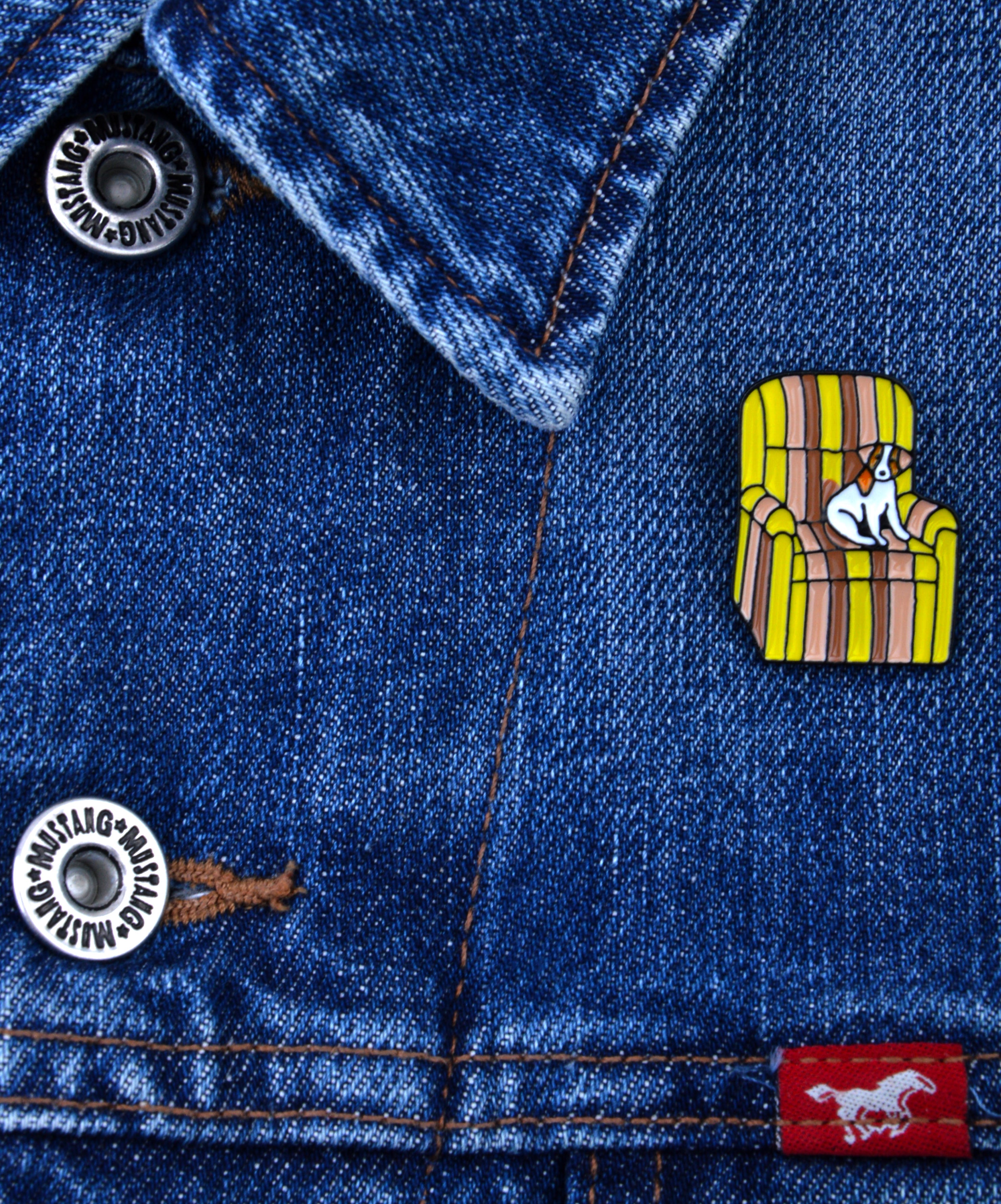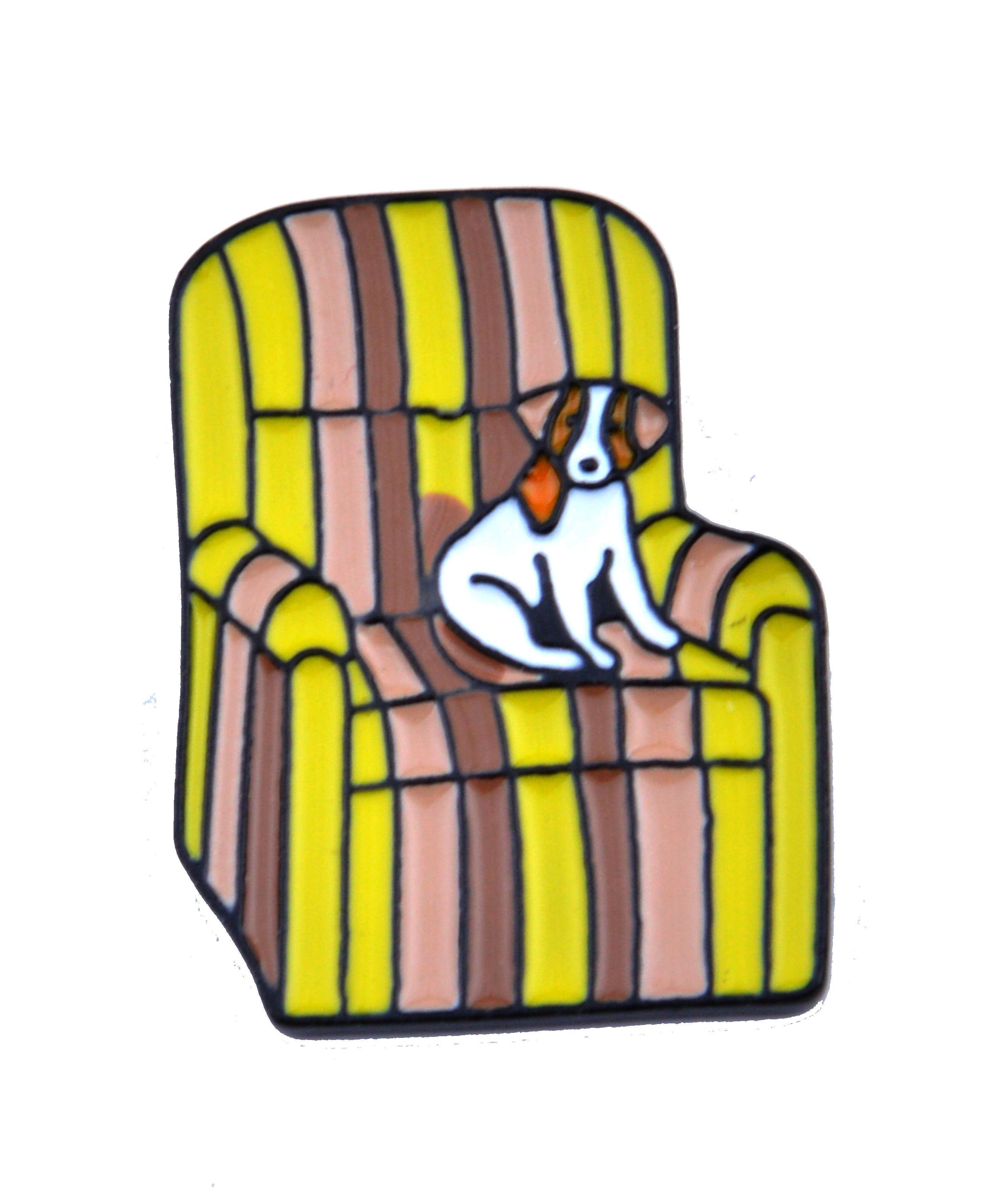 Charming Accessory for Animal Lovers Bring a smile to your look with the Dog in Chair badge. This delightful pin...