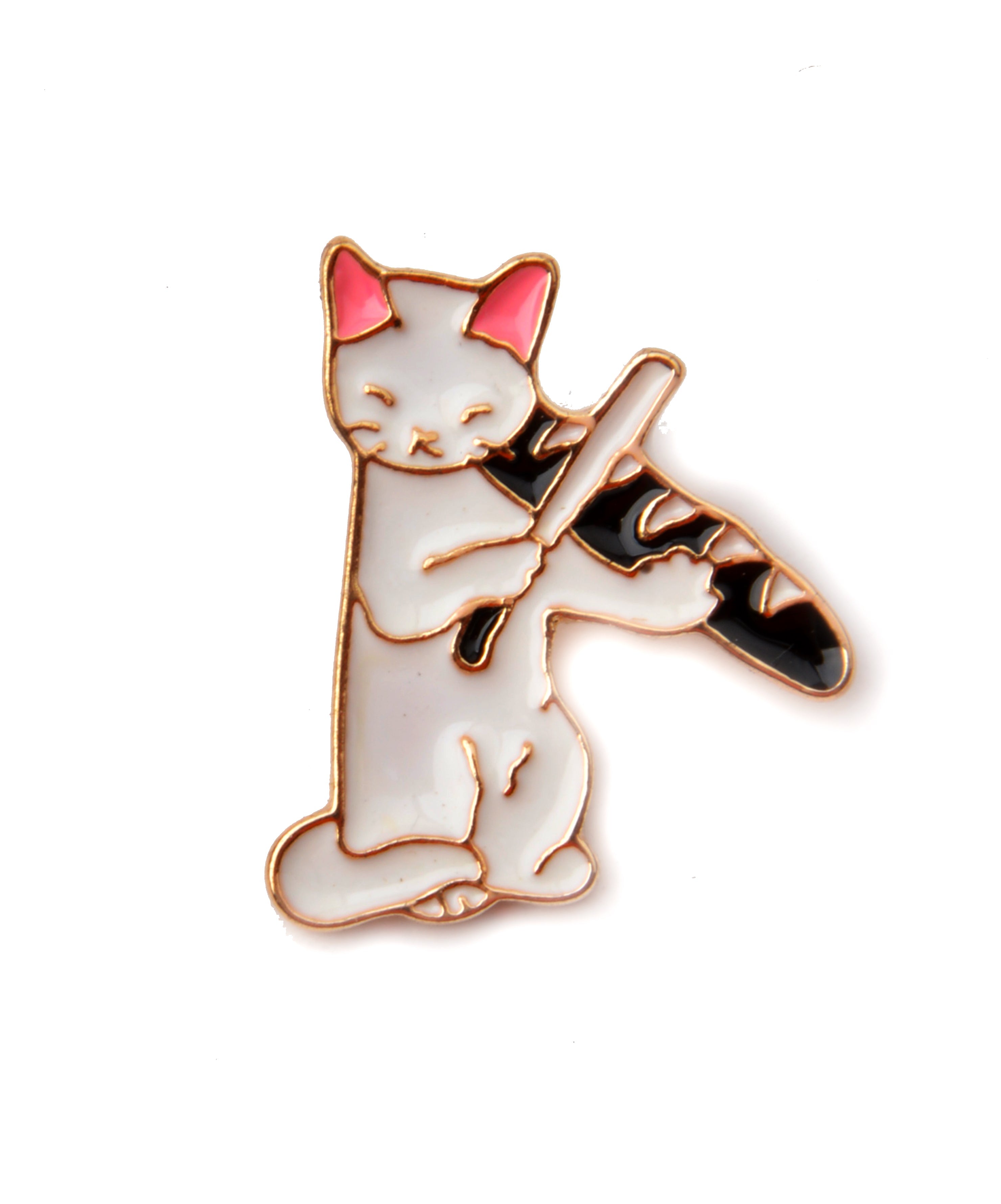 Cat with Baguette Brooch - Whimsical Foodie Design