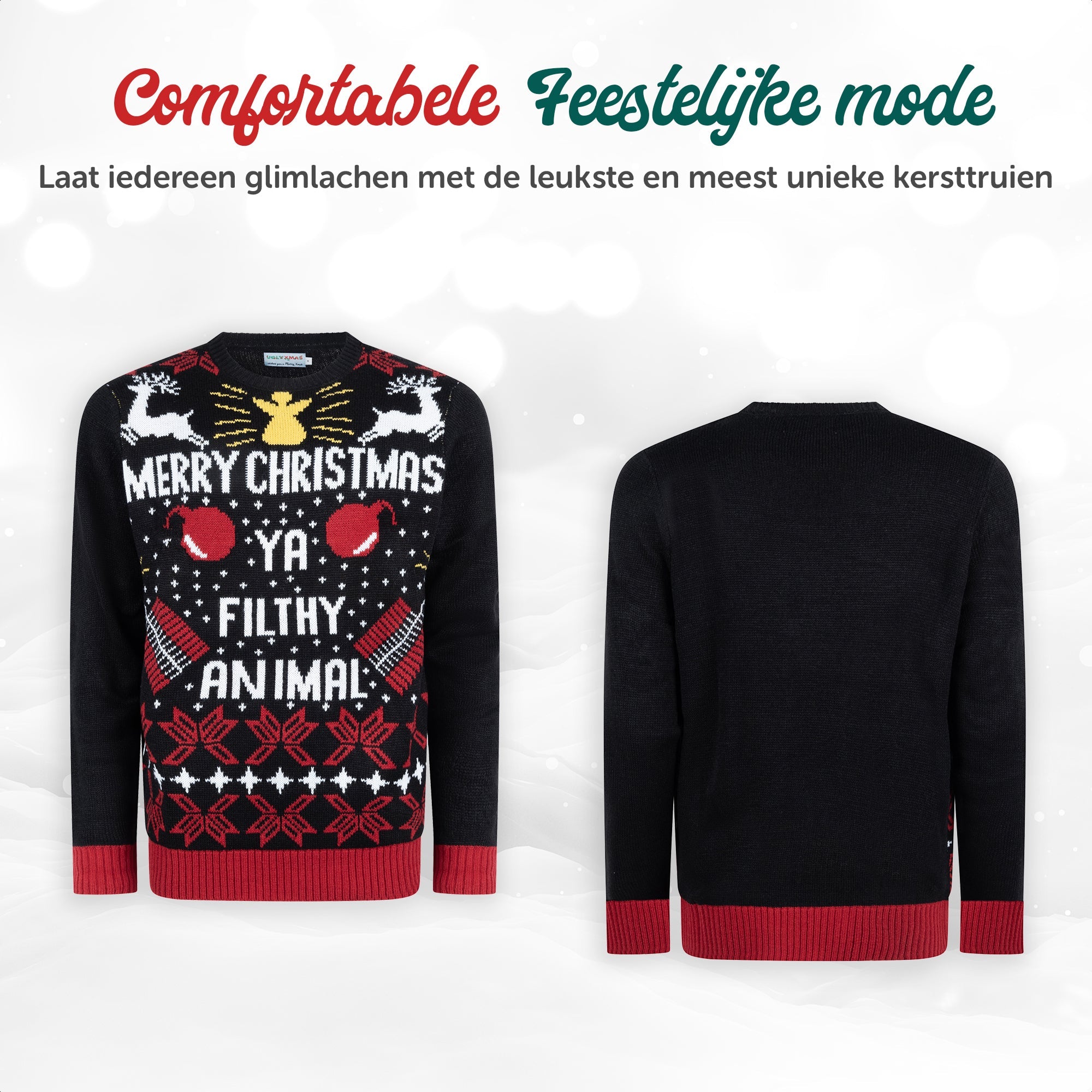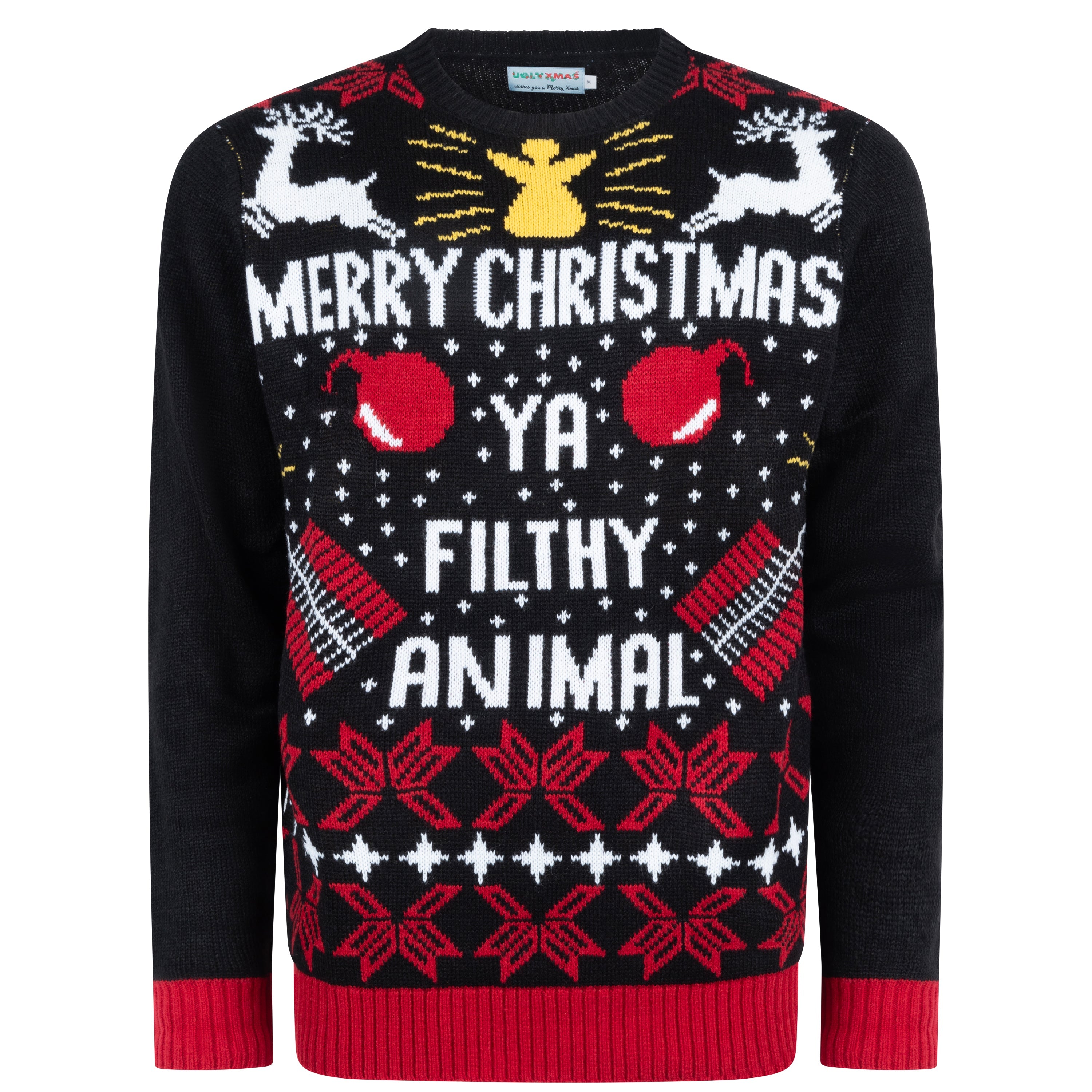 Bring Humor to the Holidays Show off your playful side with the Merry Christmas Ya Filthy Animal Sweater. This fun...