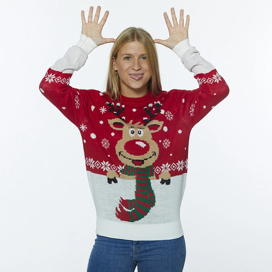 Rudolph with Scarf Christmas Sweater
