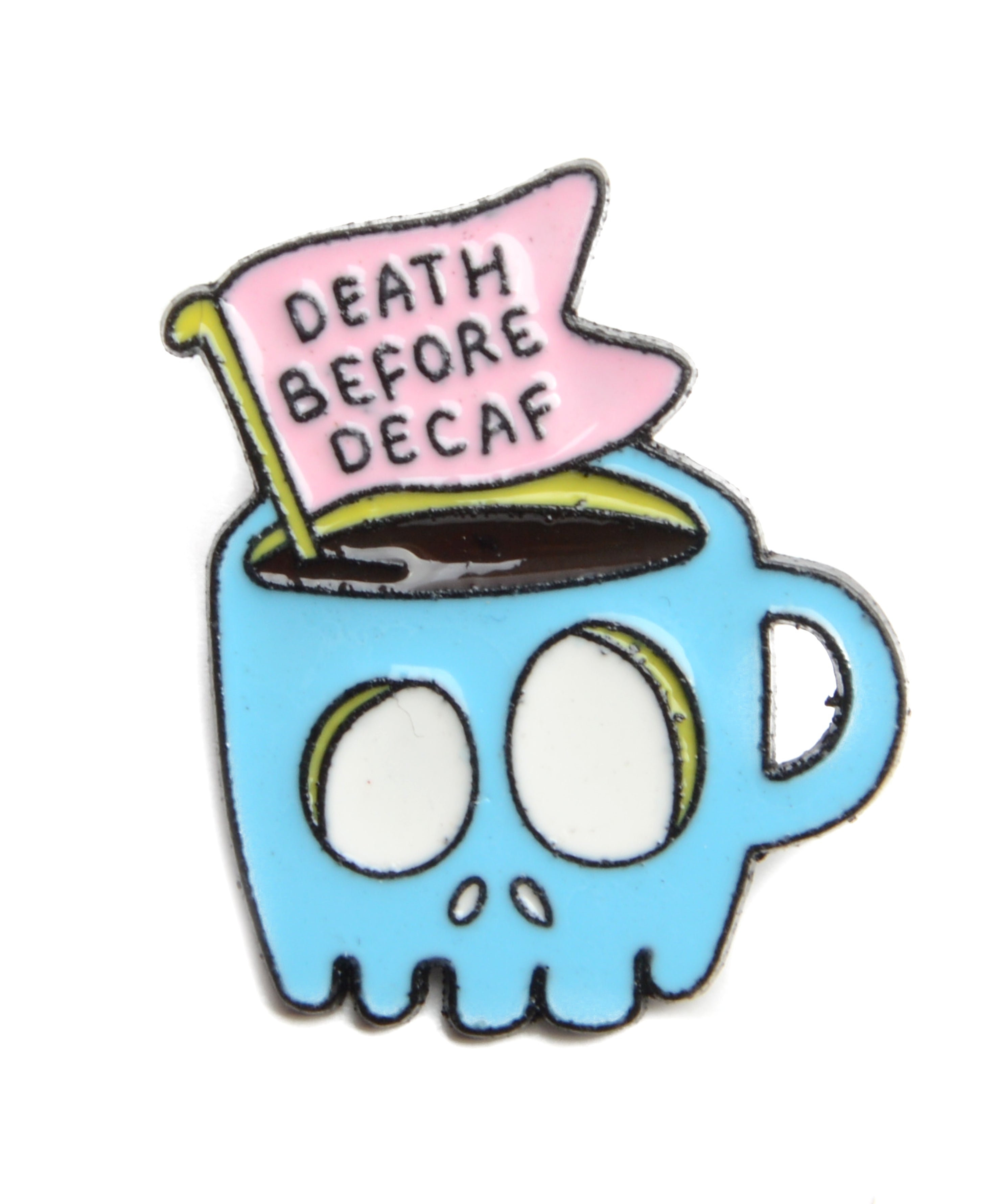 Wake Up with a Smile Embrace your coffee-loving personality with our "Death Before Decaf" pin. This humorous accessory is perfect...
