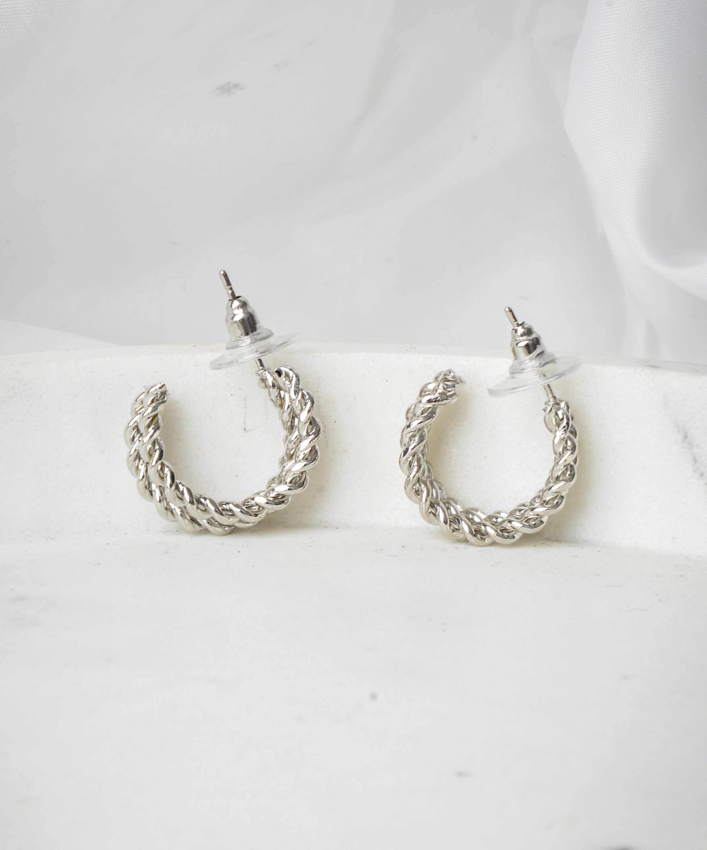 Twisted Silver Moon Earrings