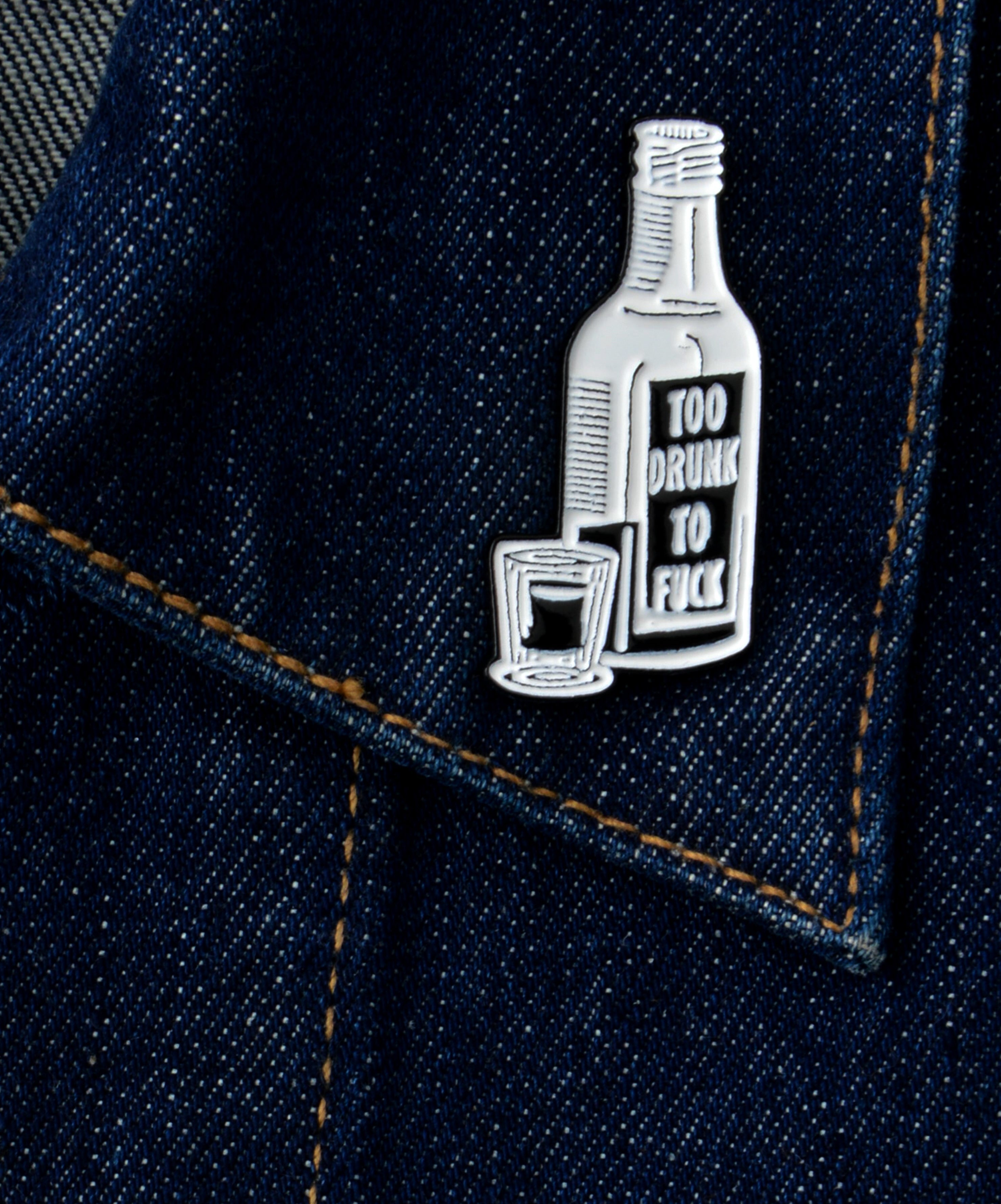 Humor Meets Style The Humorous Too Drunk Pin is the perfect accessory for those who love to add a touch...
