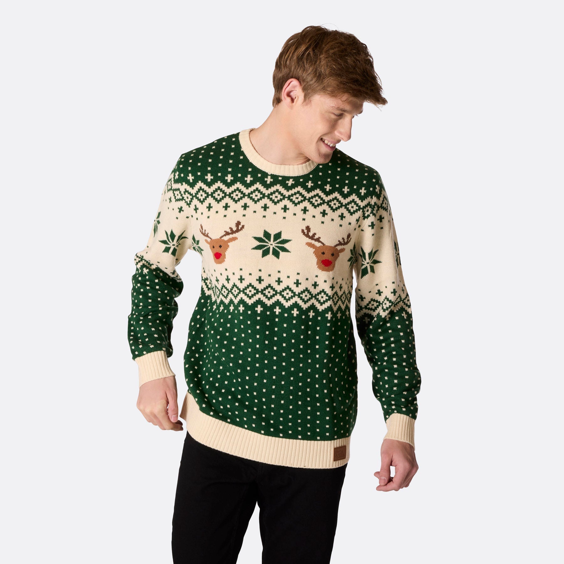 Men's Retro Reindeer Green Christmas Sweater