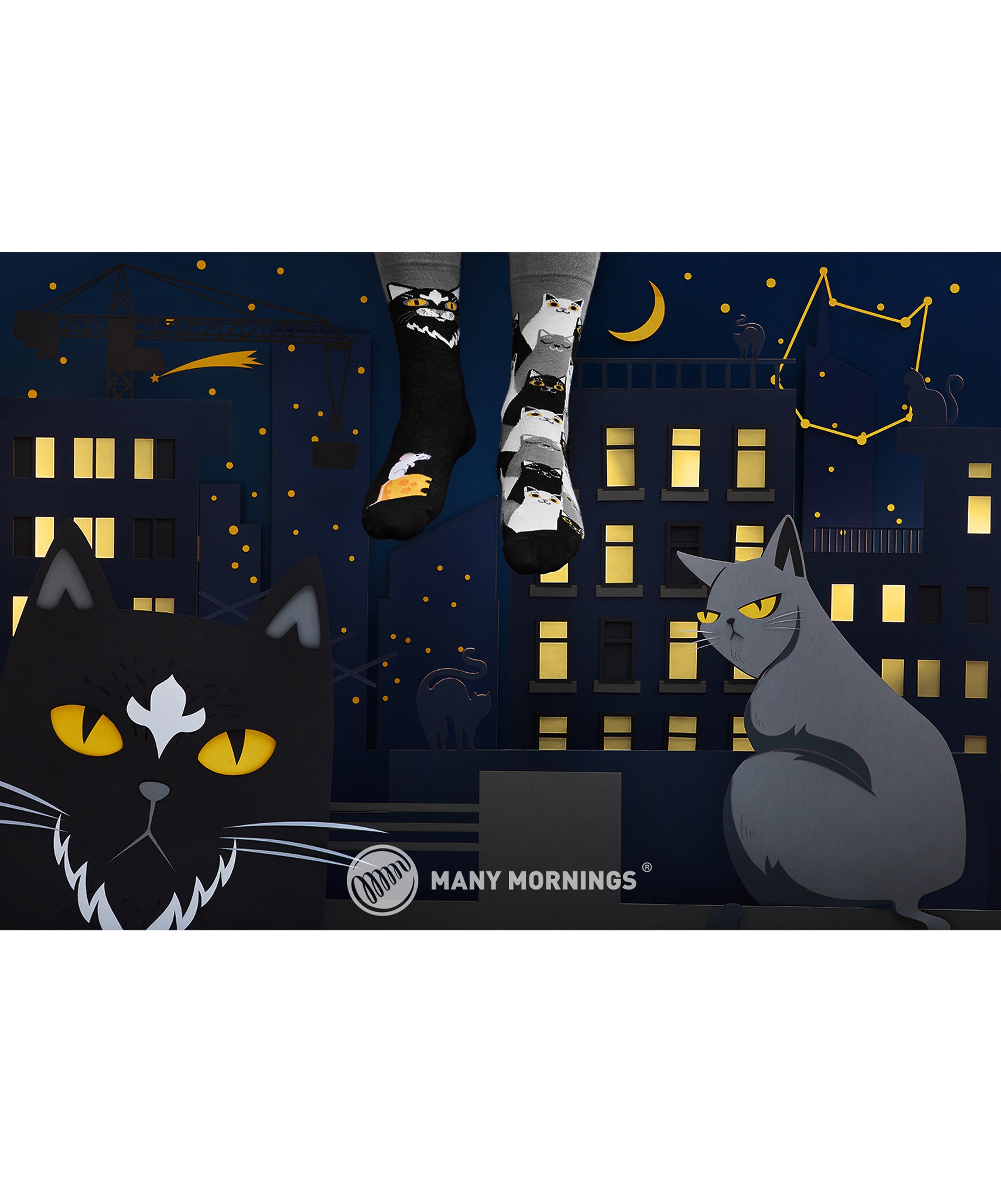 Many Mornings Zokni - Black Cat Halloween Fun Socks for All