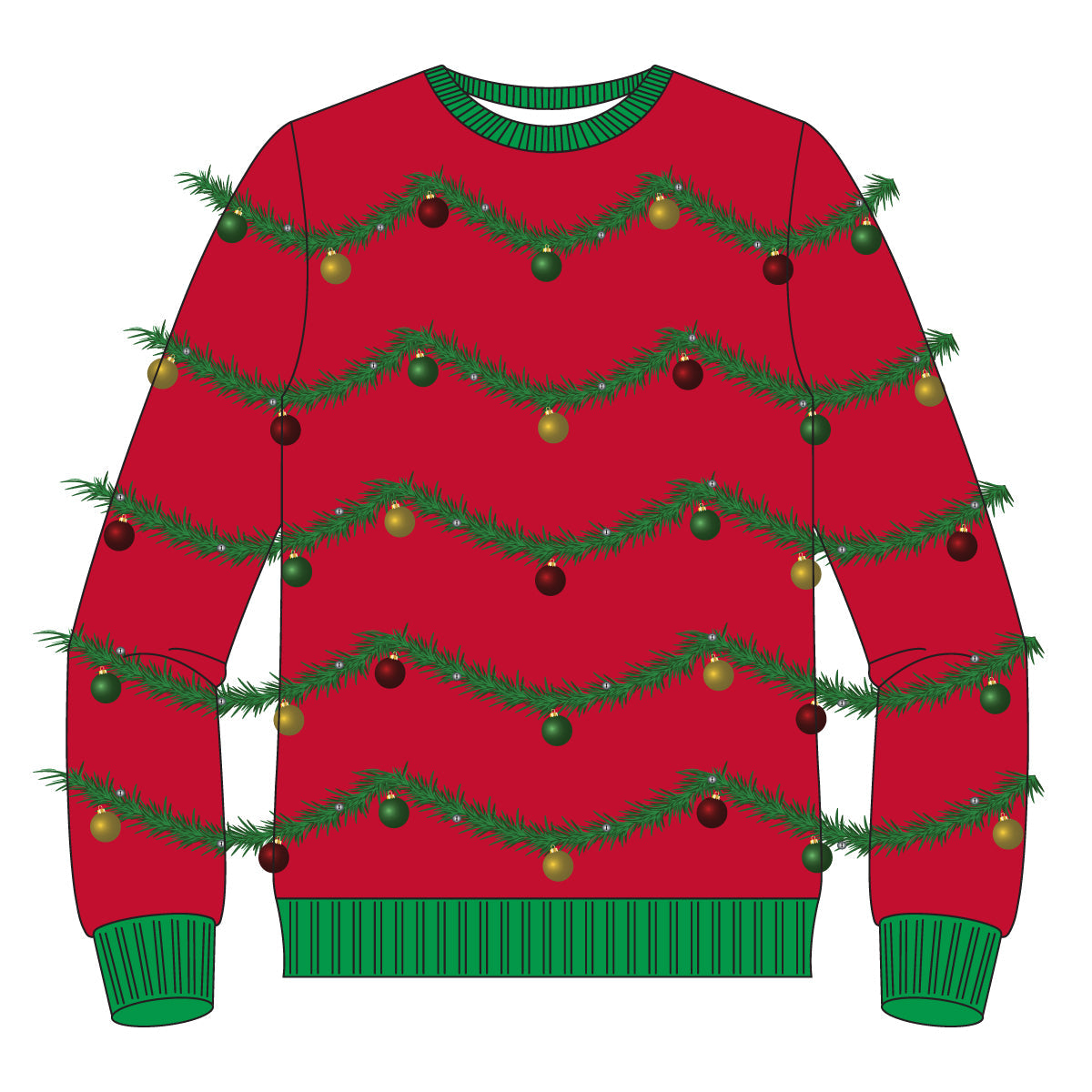 Red 3D Garland and Ornament Ugly Christmas Sweater
