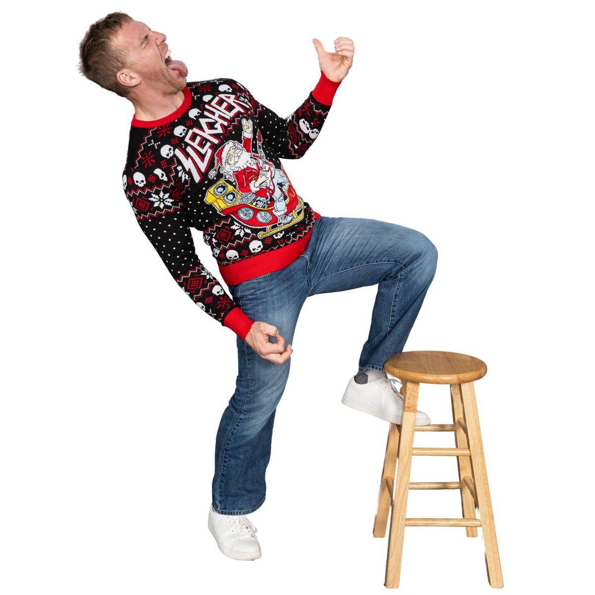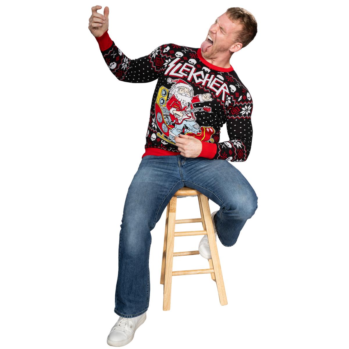 Rock and Roll Santa Claus Guitar Sleigher Ugly Sweater